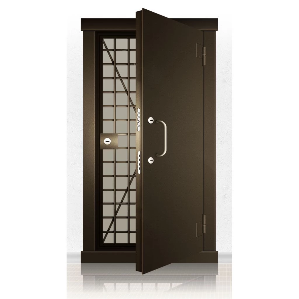 Металлические двери КХО и КХН представляют собой входные блоки, обладающие высоким уровнем взломостойкости и состоят из трех основных элементов: усиленного каркаса, сплошного металлического полотна и решетчатой двери. Дверной блок изготавливается из стального уголка 100*100 мм. Места крепления блока к стене цементируются и закрываются стальными наличниками шириной 40 мм. Крепеж заходит вглубь стены на 80 мм. В конструкции внешней створки монтируются ребра жесткости, для обшивки используется сталь толщиной не менее 3 мм. Внутренняя решетка изготавливается из прутка диаметром 16 мм. Размер ячеек решетки должен составлять не более 15 на 15 см. В точках пересечения прутья надежно приваривают друг к другу. В КХО и КХН необходимо поддерживать определенную температуру и влажность. Для этого внутреннее пространство глухой двери заполняется теплоизоляционным материалом, а по периметру двери приклеивается уплотнитель. Такие двери оборудуются замками с повышенным уровнем взломостойкости. Специализированные двери КХО и КХН в Асбесте могут быть оснащены сигнализацией, в конструкции могут быть проушины для навесного замка и элементами для опечатывания. Если идет речь о двери в комнату хранения оружия, в створке оборудуется окно для выдачи оружия и спец. средств, которое накрывается стальной дверцей.