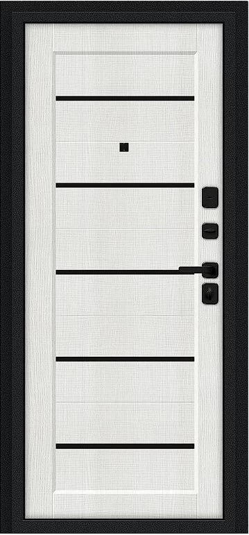 Надежная входная Дверь Браво Борн/SBlack Букле черное/Bianco Melinga премиум класса по цене 31 463 руб. Большая толщина стали защитит от проникновения в ваш дом, квартиру или коттедж. Используется очень качественная фурнитура: замки, цилиндры, ручки, защелки. Покрытие и отделка двери изготовлено под внимательным контролем производителя. Дверь имеет долгий срок службы и гарантию.