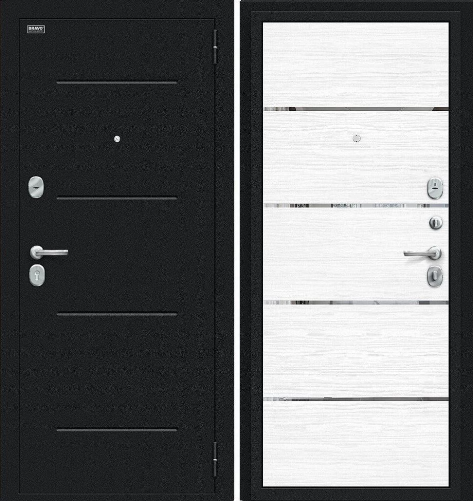 Надежная входная Дверь Браво Лайн Букле черное/Snow Melinga премиум класса по цене 30 033 руб. Большая толщина стали защитит от проникновения в ваш дом, квартиру или коттедж. Используется очень качественная фурнитура: замки, цилиндры, ручки, защелки. Покрытие и отделка двери изготовлено под внимательным контролем производителя. Дверь имеет долгий срок службы и гарантию.